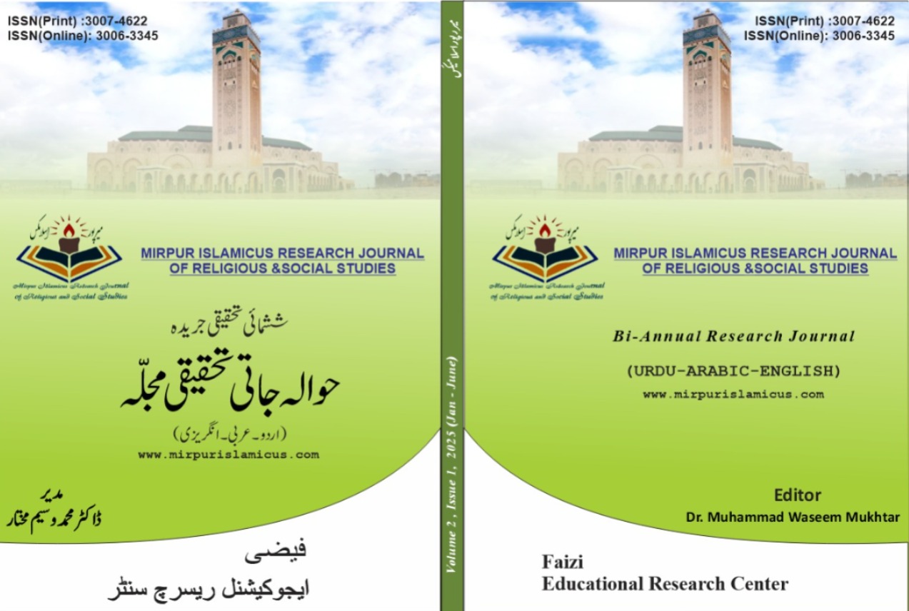 Mirpur Islamicus Journal of Religious and Social Studies is a peer-reviewed international scholarly journal. It is a bi-annual research publication. The Journal is a multi-disciplinary endeavor dedicated to the scholarly study of various aspects of Islam and the Islamic world, focusing particularly on Islamic Philosophy, Mysticism, Interfaith dialogue, and Islamic culture and civilization. It seeks to place Islam and its traditions in the light of spirituality and rationality, highlighting its pragmatic and tremendous values. It serves as a forum for the study of Islam with special academic inquiry and in a global context. The goal of the journal is to promote interaction among academics from multiple traditions of learning, facilitating the exchange and discussion of research findings. Mirpur Islamicus is a vehicle to help academics, researchers, and policy makers to educate, influence, and share information, learn from each other's work, and explore new solutions to rising problems.